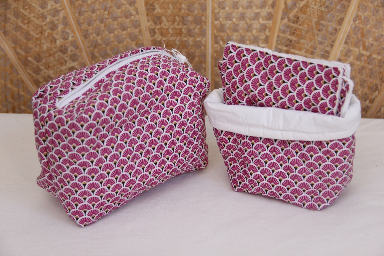 This toiletry kit contains a small bag and a basket of 5 large wipes (13/13cm).