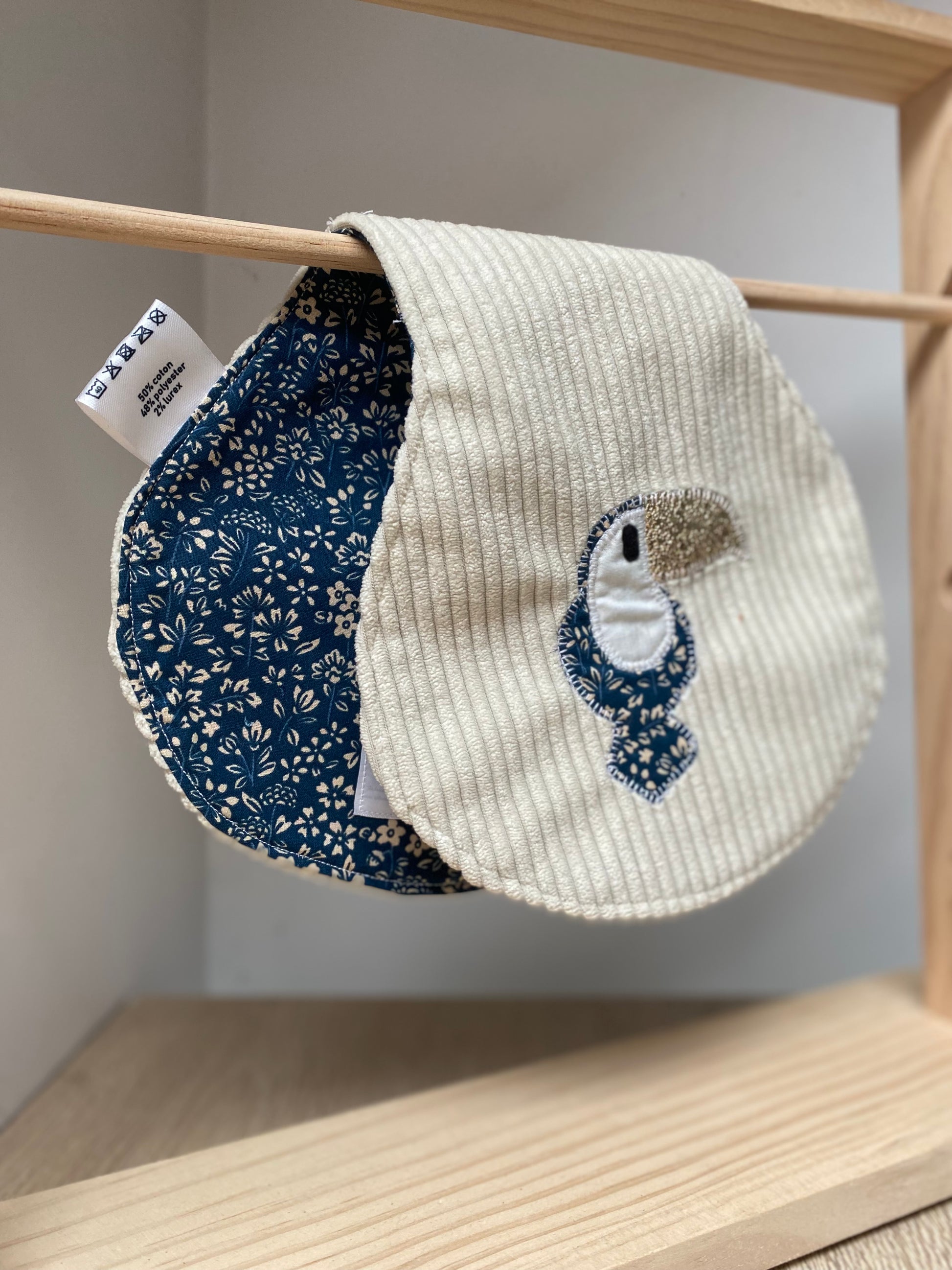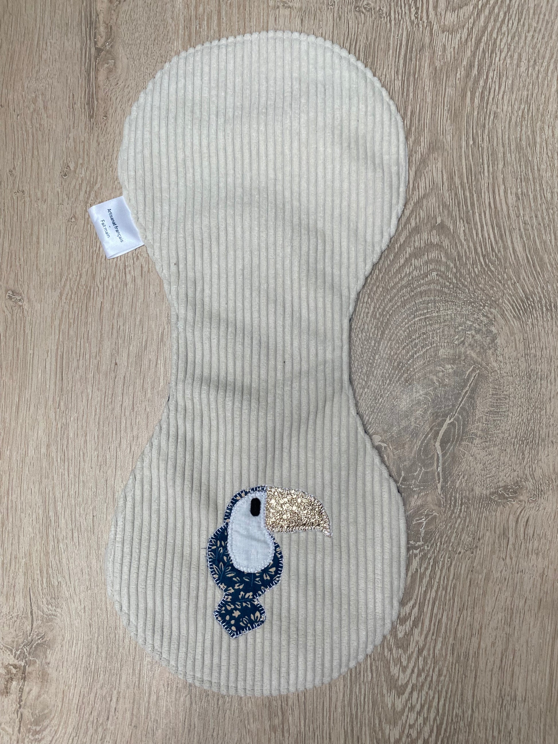 Bavoir d'épaule - petit toucan - Crème/Bleu