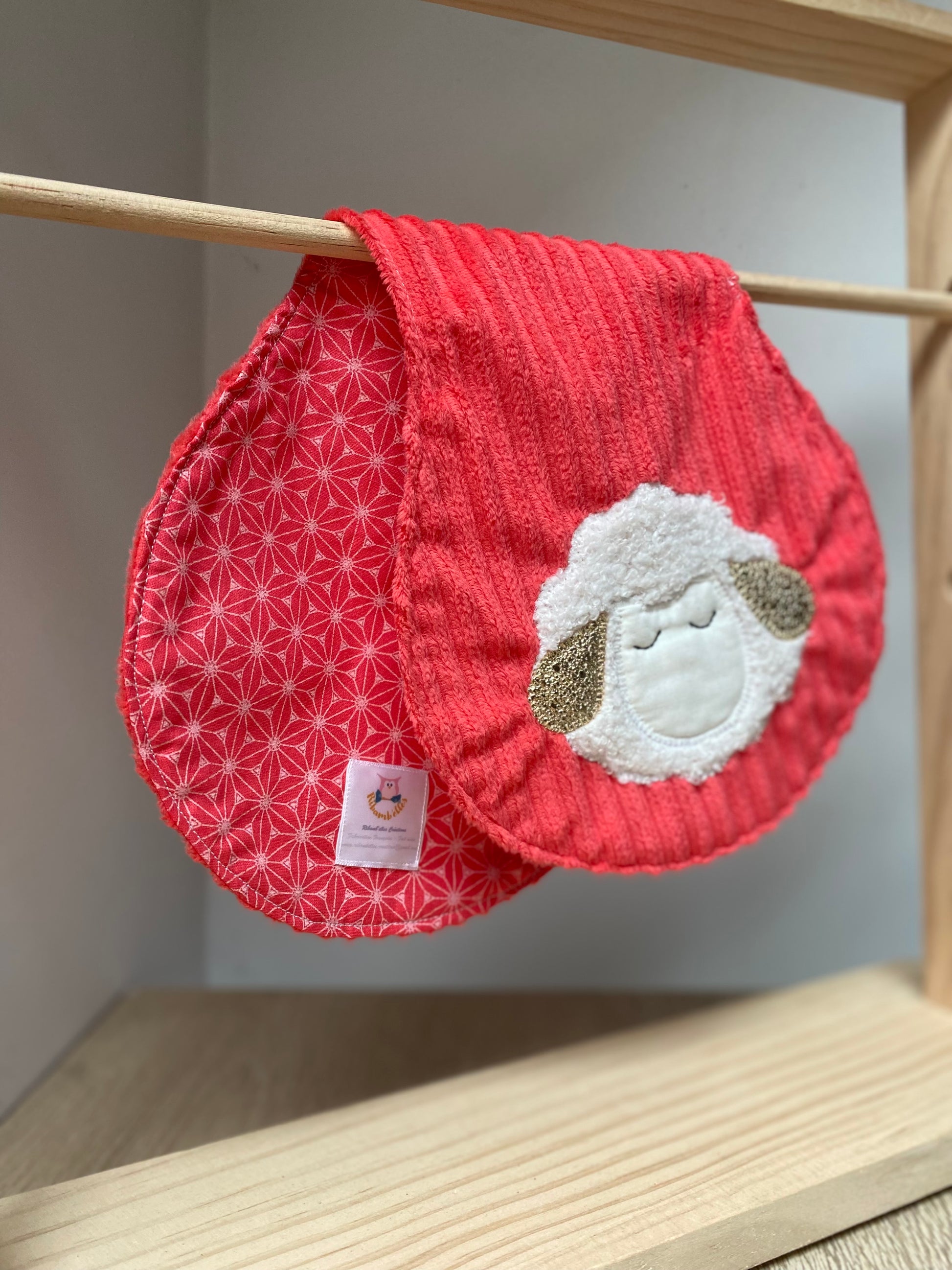 Bavoir d'épaule - petit mouton - Fuchsia/Crème