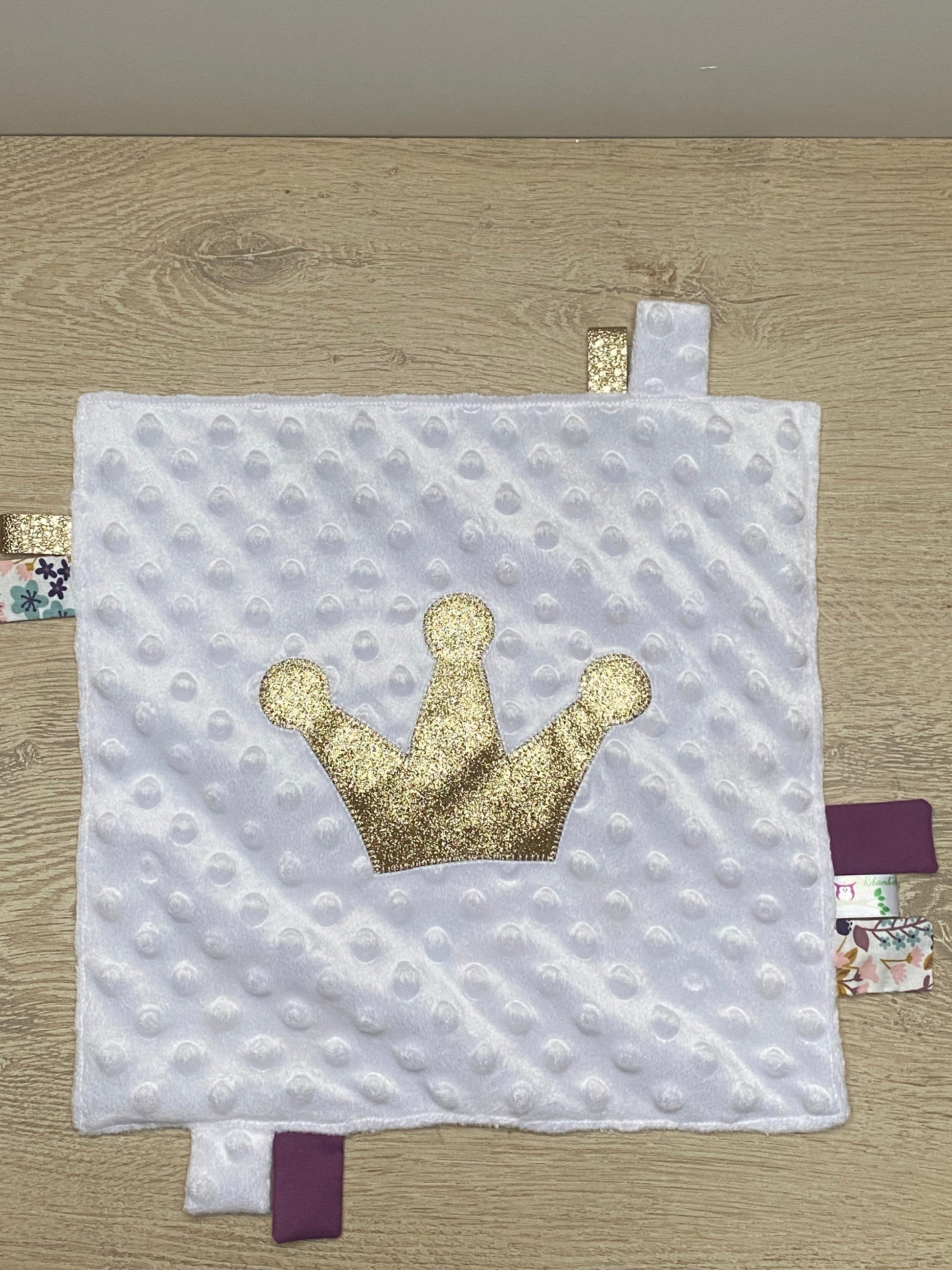 Doudou étiquettes - Collection Princes&Princesses - Violet/Blanc/Rose