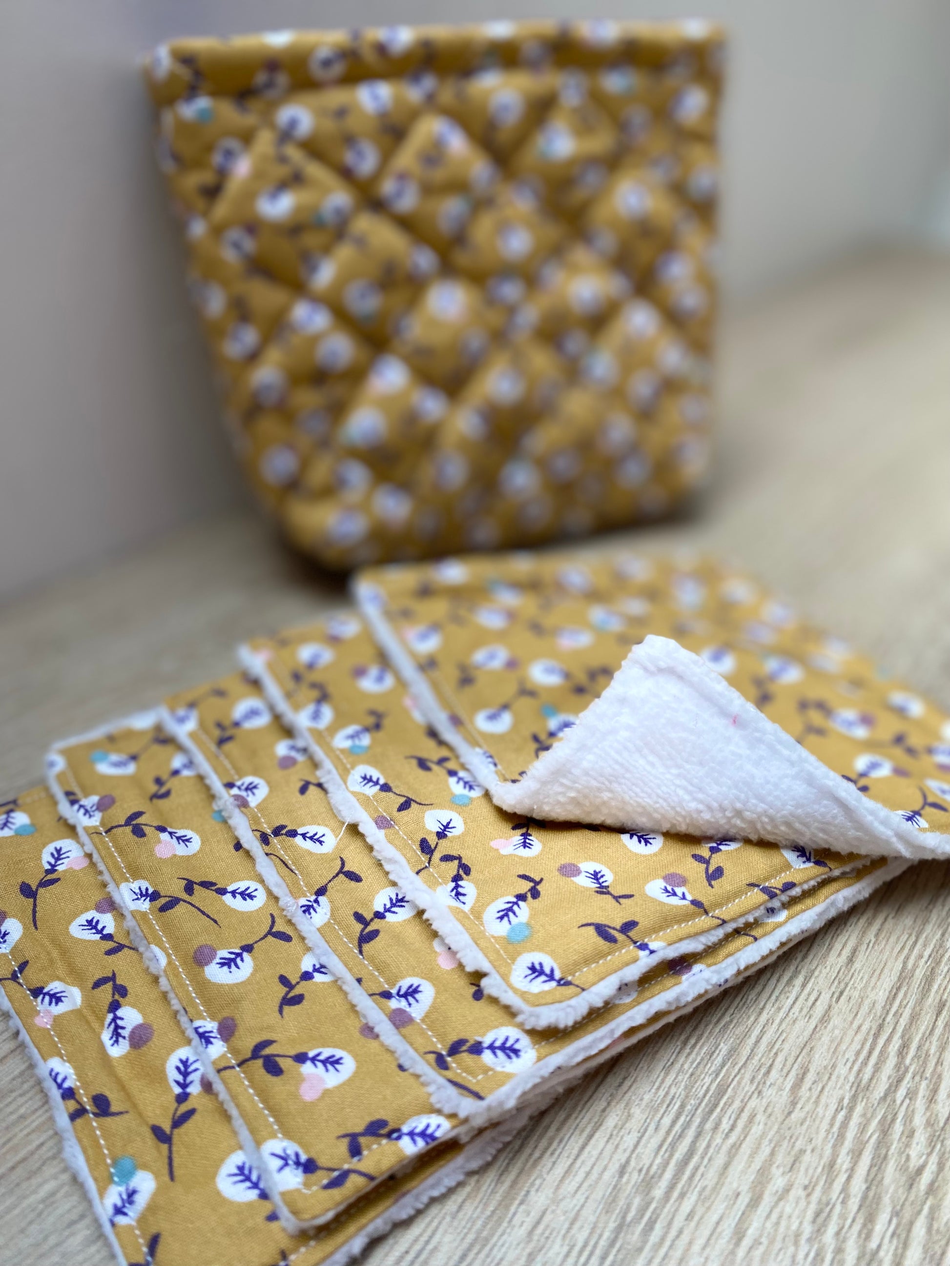 Panière de 5 lingettes format moyen (14cm/14cm).