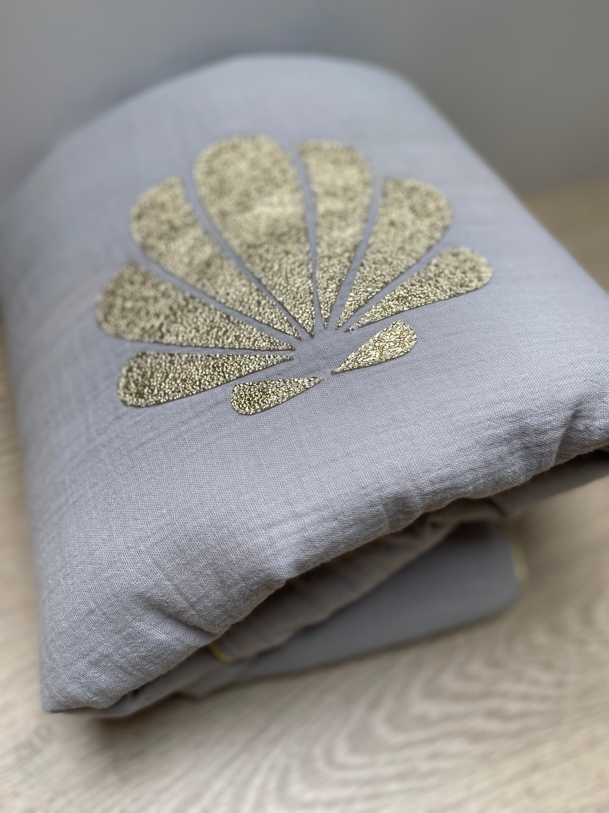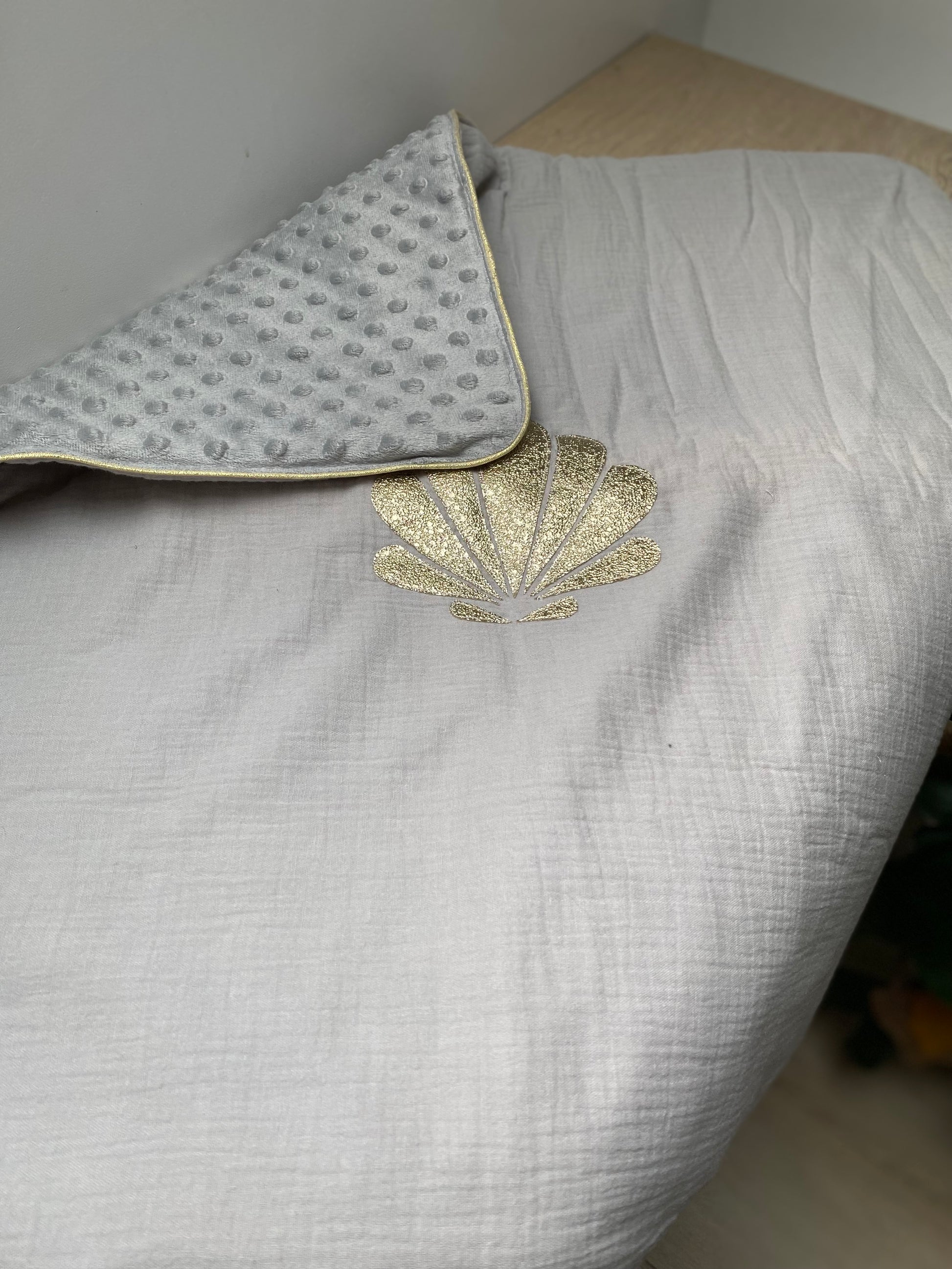 Ce plaid mesure environ 70/70cm. Il est entièrement ouaté. Vous pourrez l'utiliser pour les sorties en poussette lors des soirées fraîches.