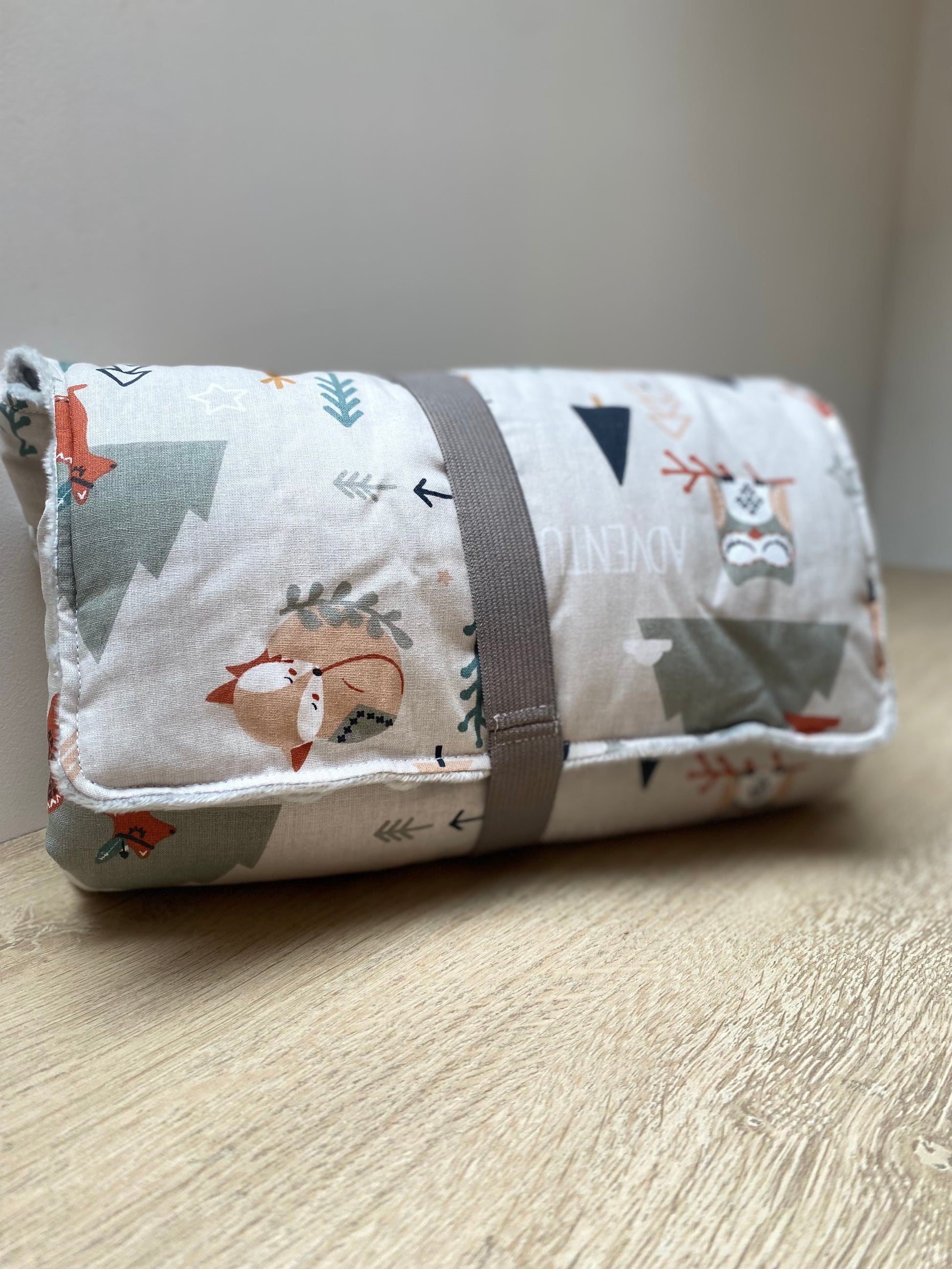 Ce tapis nomade mesure environ 60/50cm. Idéal pour les déplacements, il permettra de changer bébé partout où vous allez.